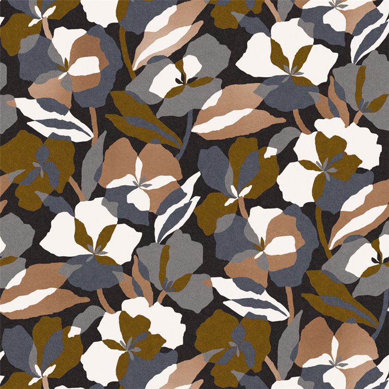 Papel pintado flores azul y verde superpuestas de Casamance, colección Jardin Félicia. Calidad vinílico lavable, medidas: 70 cm x 10 m.