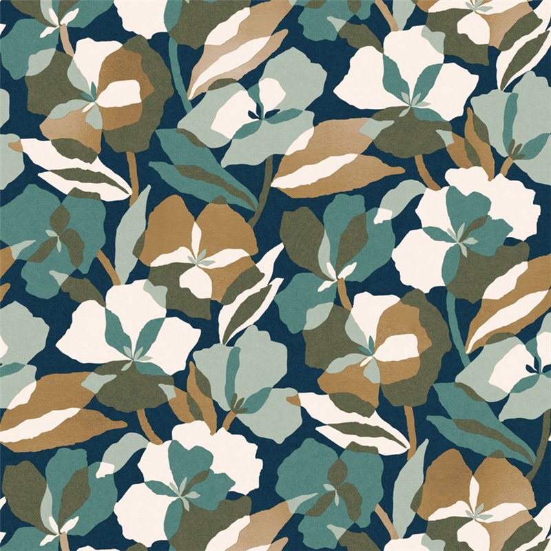 Papel pintado flores superpuestas verde y perlado de Casamance, colección Jardin Félicia. Calidad vinílico lavable, medidas: 70 cm x 10 m.