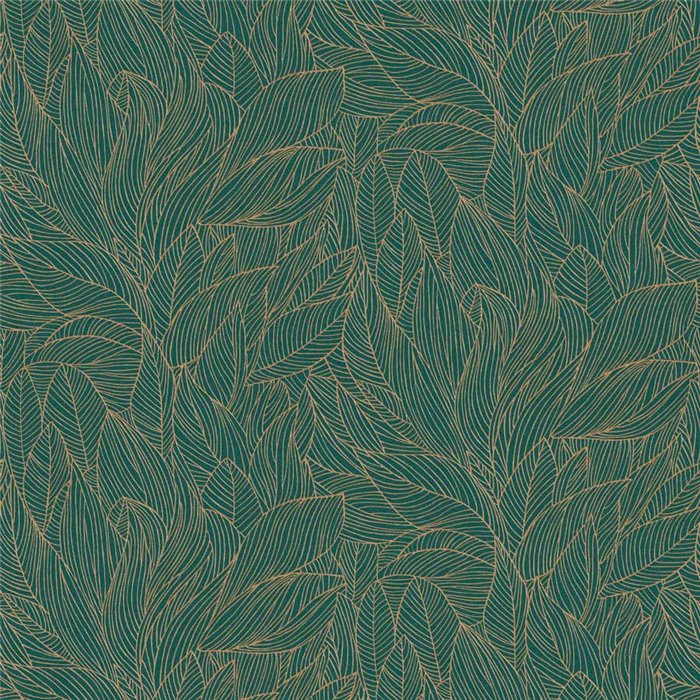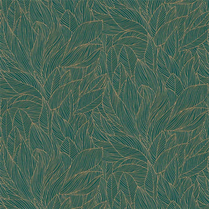 Papel pintado floral verde y dorado alta gama con efecto brillante