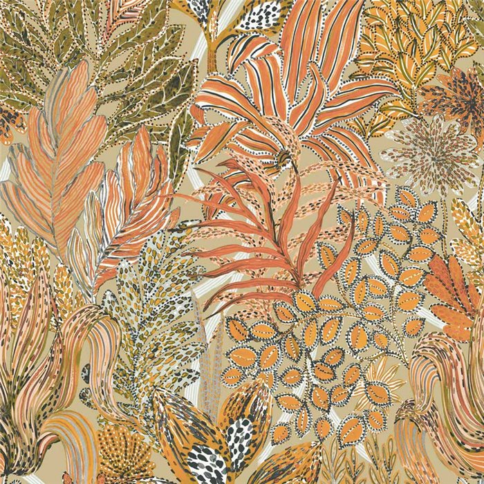 Papel pintado flores de jardín multicolor de Casamance, colección Jardin Félicia. Calidad vinílico lavable, medidas: 68,6 cm x 10 m.