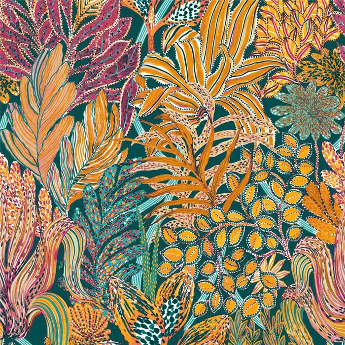 Papel pintado flores de jardín verdes y rosa de Casamance, colección Jardin Félicia. Calidad vinílico lavable, medidas: 68,6 cm x 10 m.