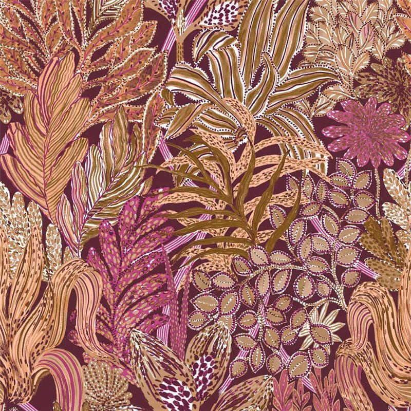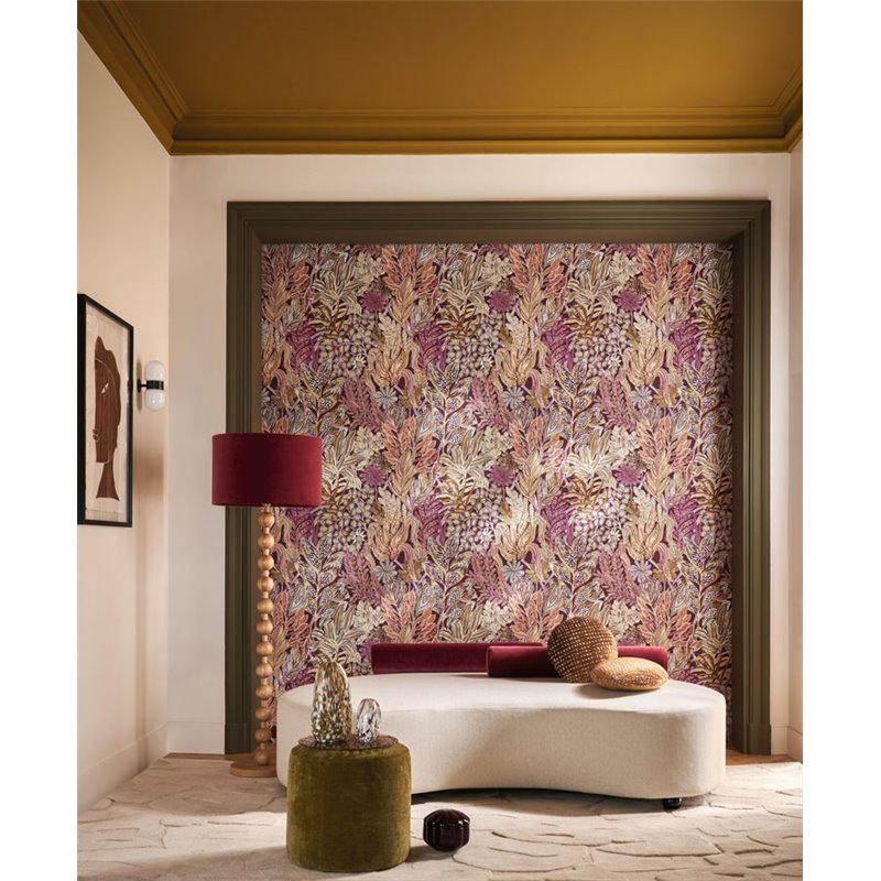Papel pintado flores de jardín verdes y rosa de Casamance, colección Jardin Félicia. Calidad vinílico lavable, medidas: 68,6 cm x 10 m.