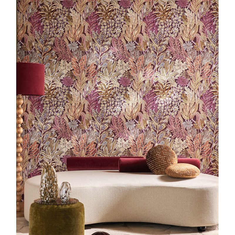Papel pintado flores de jardín multicolor de Casamance, colección Jardin Félicia. Calidad vinílico lavable, medidas: 68,6 cm x 10 m.