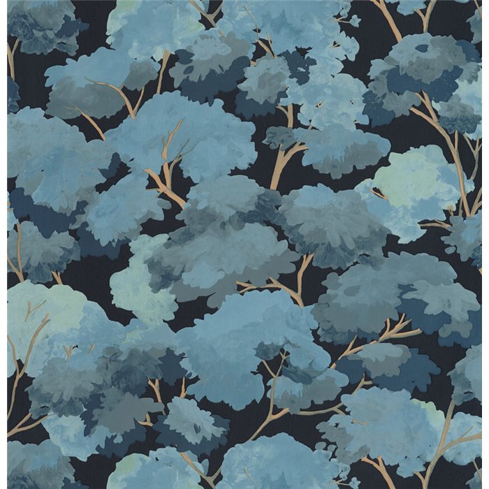 Papel pintado acuarela con bosque azul y beige. Caselio Balade, papel de pared calidad tejido no tejido lavable. Medidas: 53 cm x 10 metros