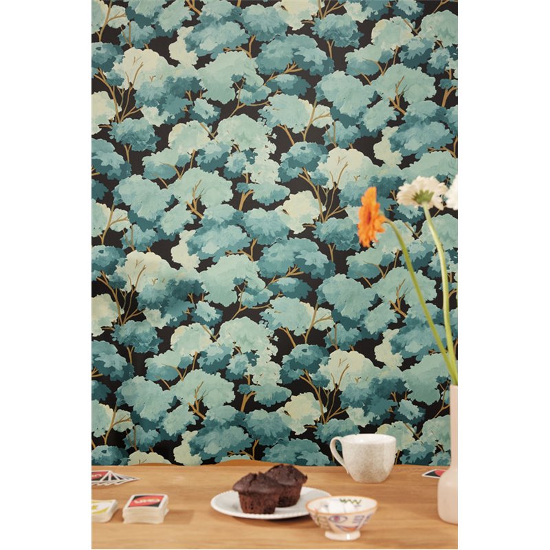 El papel pintado Caselio Ete es como un bosque verde bajo un cielo de verano, a elegir entre una preciosa gama de fondos oscuros o claros inspirados en nuestros paseos con el sol en su apogeo o bajo la luz de la luna.