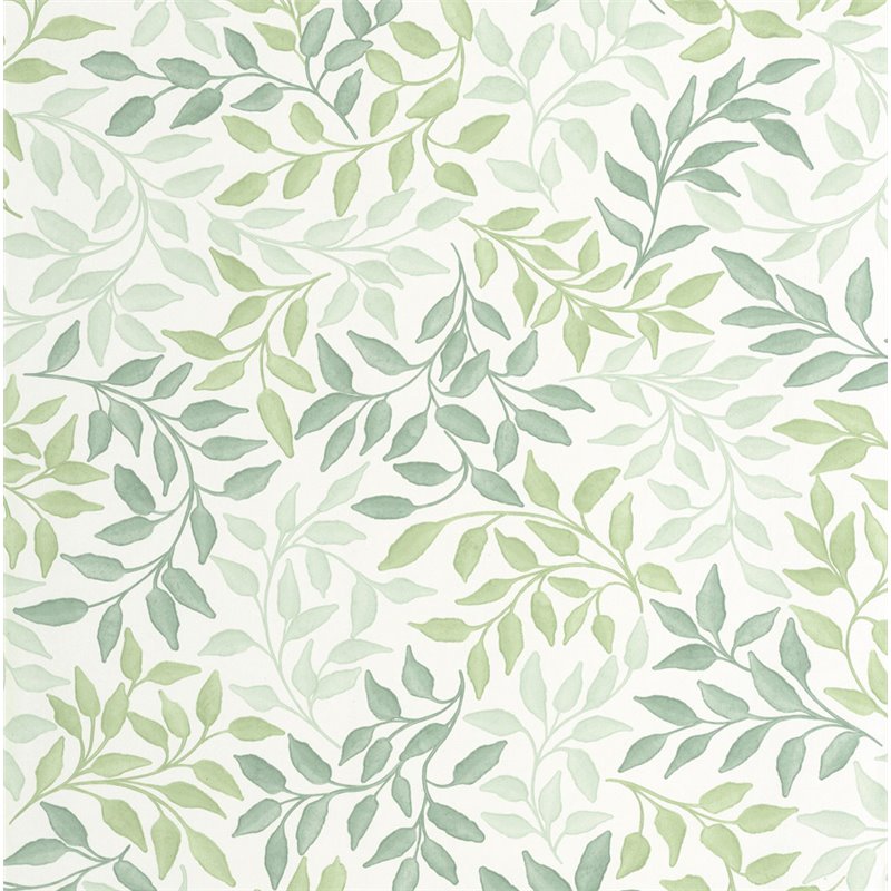 Papel pintado floral para salón, estampado de hojas verde. Caselio Balade, papel de pared calidad tejido no tejido lavable. Medidas: 53 cm x 10 metros