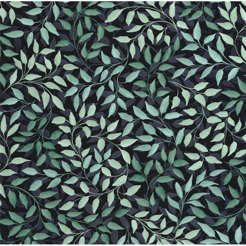 Papel pintado floral para salón, estampado de hojas verde. Caselio Balade, papel de pared calidad tejido no tejido lavable. Medidas: 53 cm x 10 metros