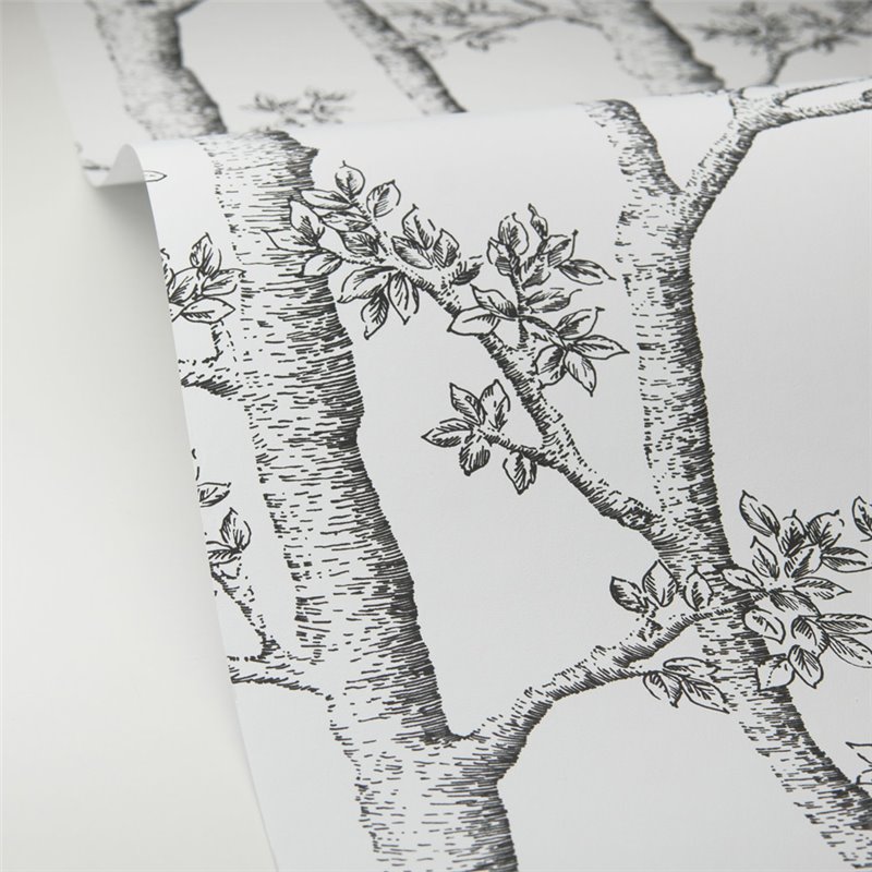 Papel pintado árboles en otoño tipo grabado minimalista. Caselio Balade, papel de pared calidad tejido no tejido lavable. Medidas: 53 cm x 10 metros