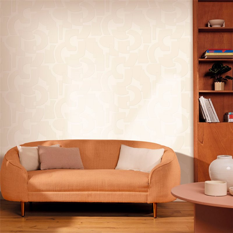 Papel pintado geométrico efecto 3D blanco. Caselio Origine, papel de pared calidad tejido no tejido lavable. Medidas: 53 cm x 10 metros