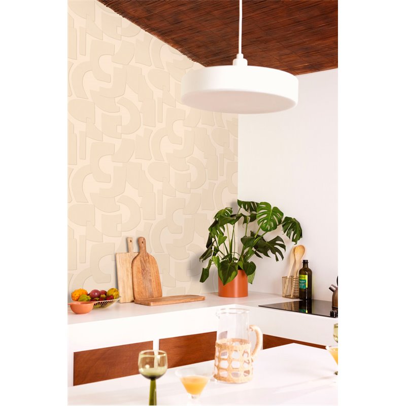 Papel pintado geométrico efecto 3D blanco. Caselio Origine, papel de pared calidad tejido no tejido lavable. Medidas: 53 cm x 10 metros