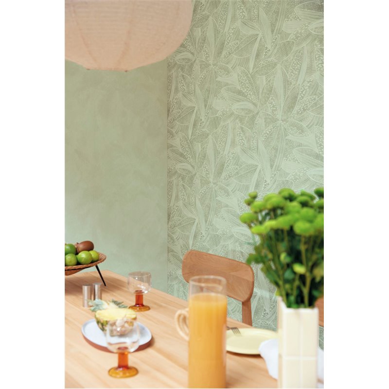 Papel pintado estucado, pintura a la cal verde grisáceo. Caselio Origine, papel de pared calidad tejido no tejido lavable. Medidas: 53 cm x 10 metros