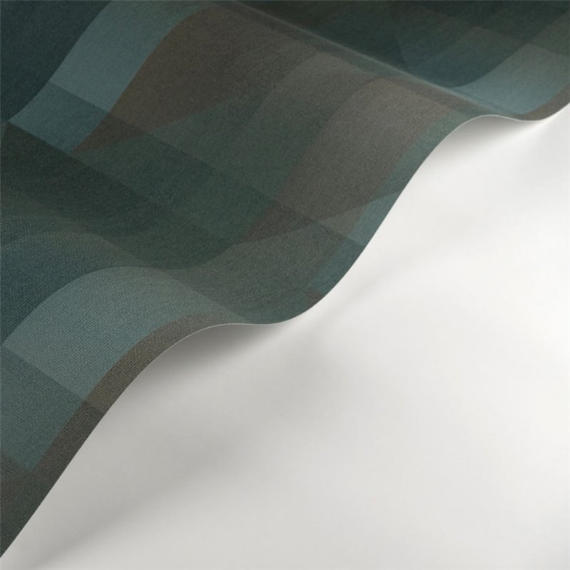 Papel pintado abstracto estilo inglés verde, diseño geométrico. Formas verdes para un salón con estilo tradicional.