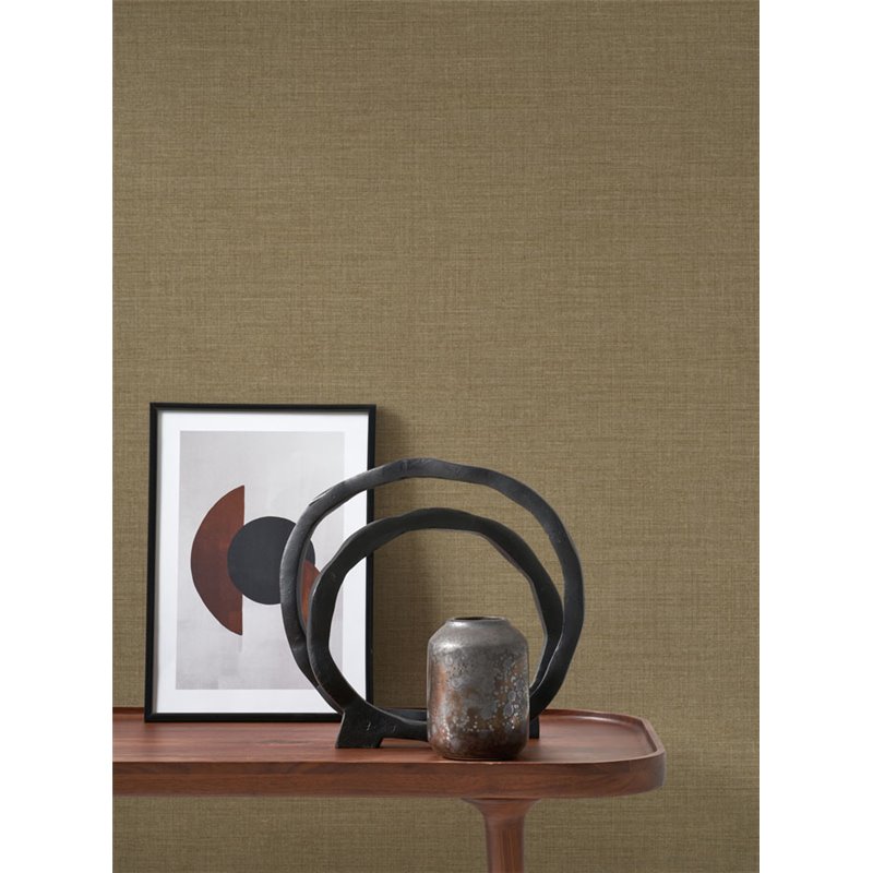 Papel pintado liso efecto textil marrón. Textura uniforme para un salón rústico y cálido.