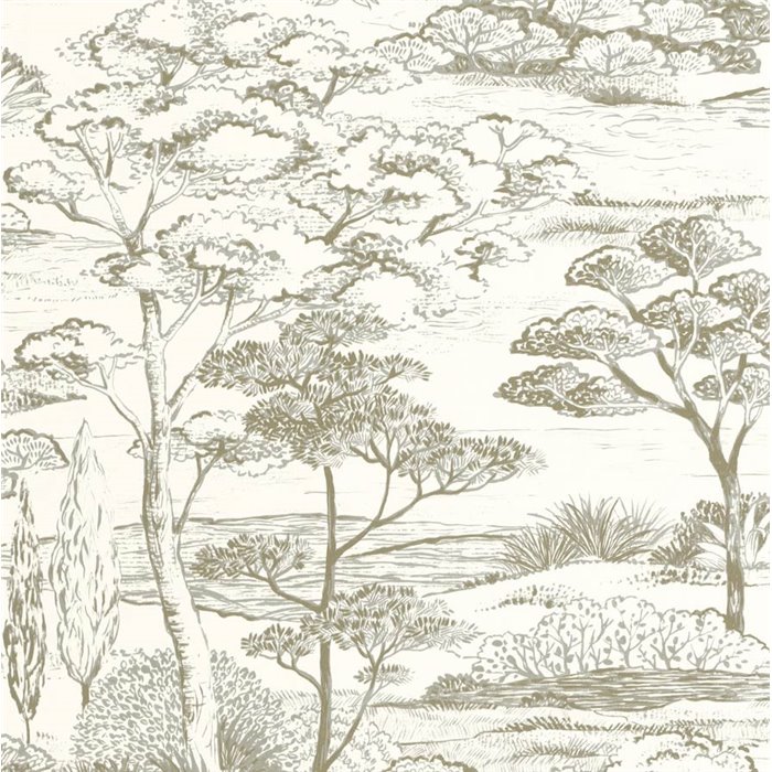 Papel pintado estilo mediterráneo con paisaje de pinos. Pinos naturales para un salón con encanto mediterráneo.
