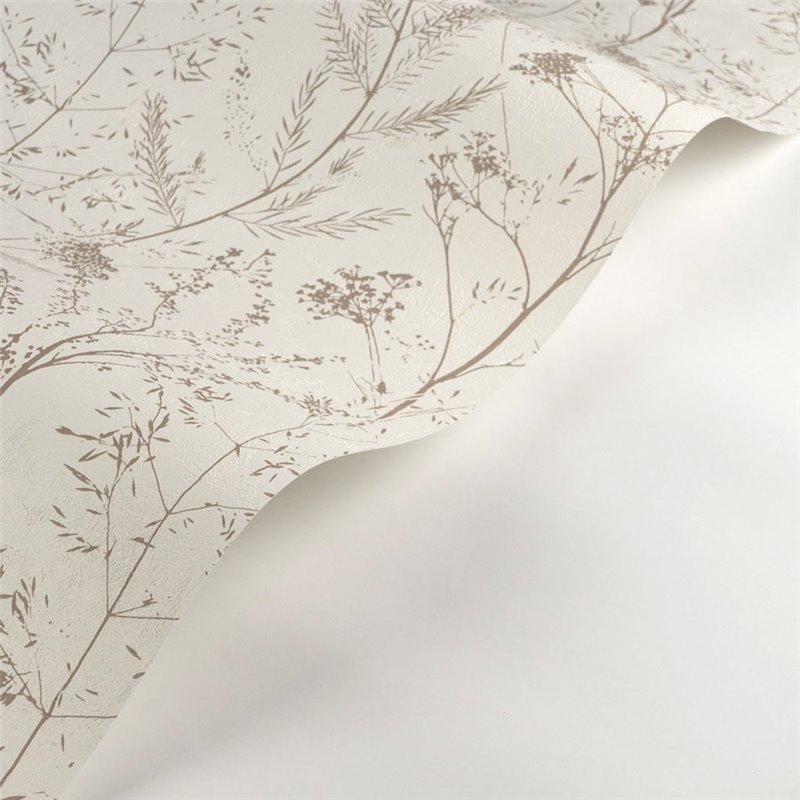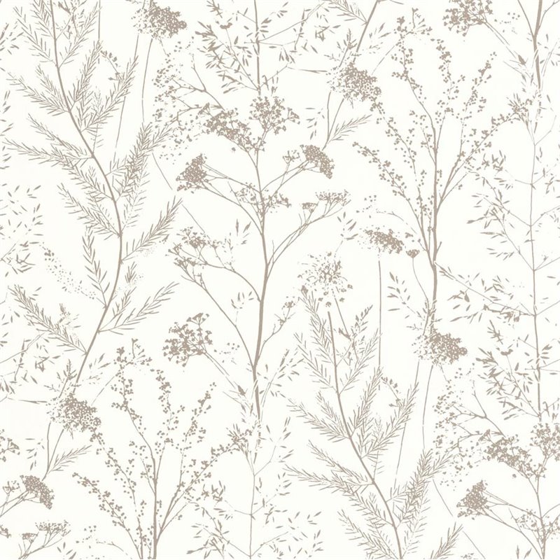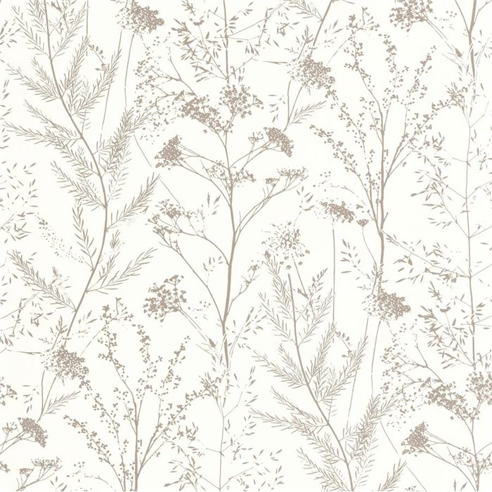 Papel pintado sencillo con estampado floral de lavandas marinas beige. Diseño cálido para un recibidor acogedor y natural.
