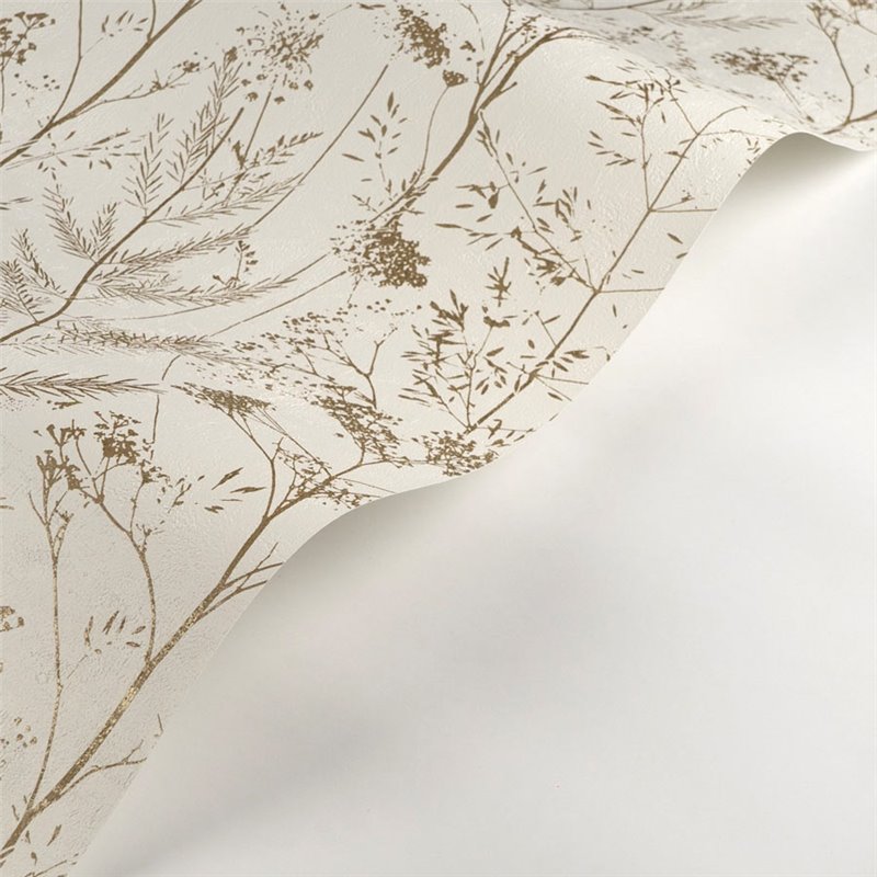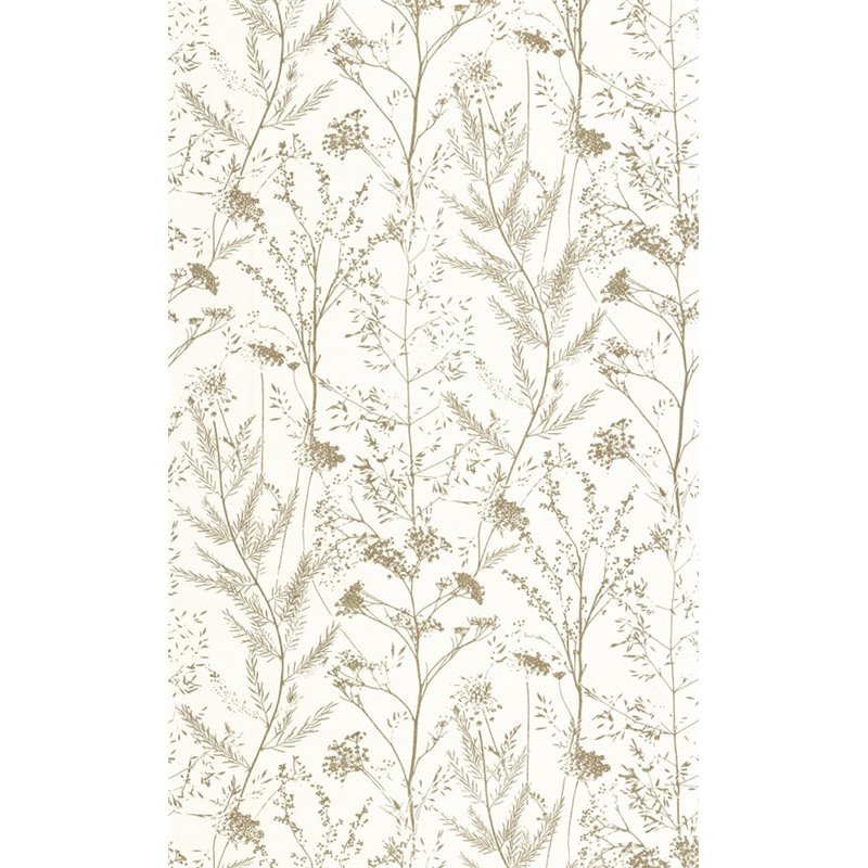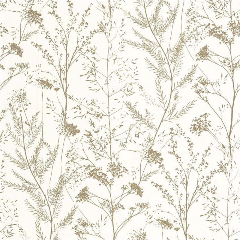 Papel pintado sencillo con estampado floral de lavandas marinas beige. Diseño cálido para un recibidor acogedor y natural.