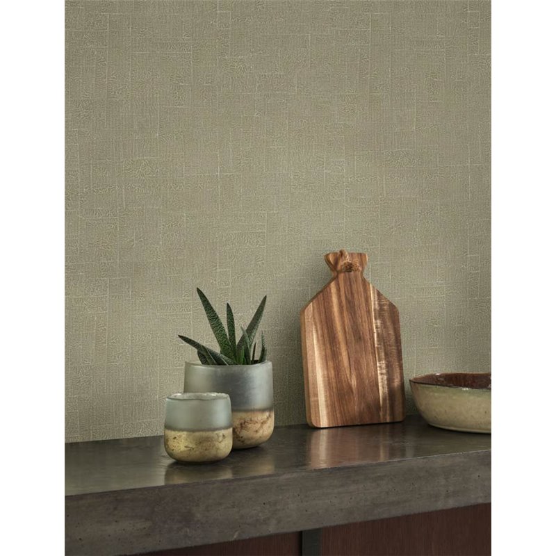 Papel pintado moderno verde con una bonita textura y efecto brillo. Vibrante para un comedor fresco.