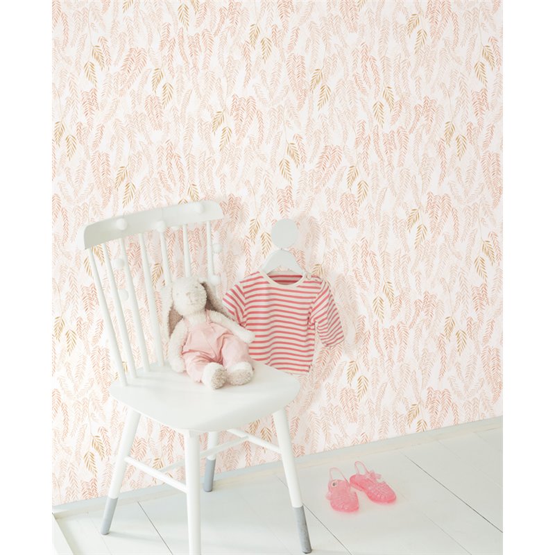 Papel pintado infantil hojas blanco y beige marca Casadeco, colección Once Upon A Time 2. Calidad tejido no-tejido lavable, medidas: 53 cm x 10 m.