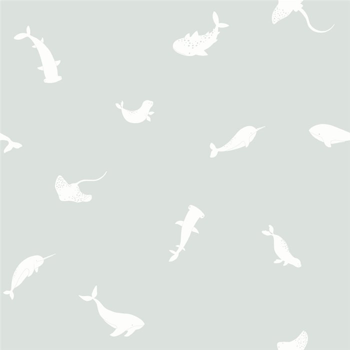 Papel pintado infantil animales marinos blanco y gris marca Casadeco, colección Once Upon A Time 2. Calidad tejido no-tejido lavable, medidas: 53 cm x 10 m.