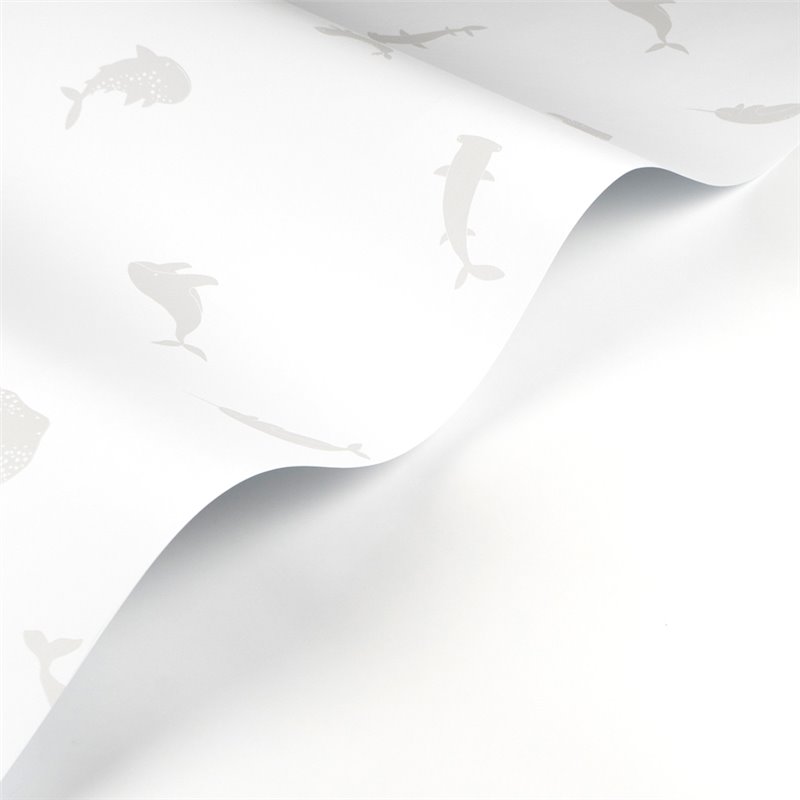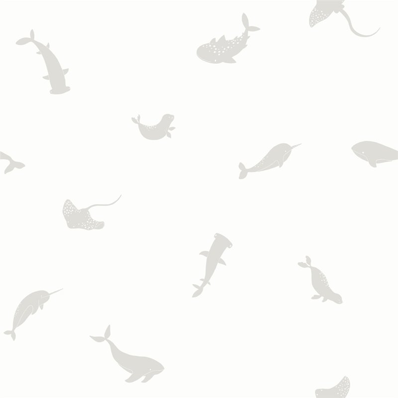 Papel pintado infantil animales marinos blanco y gris marca Casadeco, colección Once Upon A Time 2. Calidad tejido no-tejido lavable, medidas: 53 cm x 10 m.