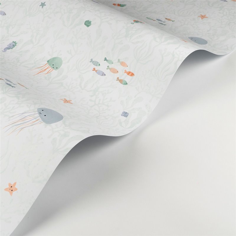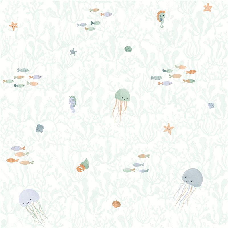Papel pintado infantil animales marinos verde marca Casadeco, colección Once Upon A Time 2. Calidad tejido no-tejido lavable, medidas: 53 cm x 10 m.