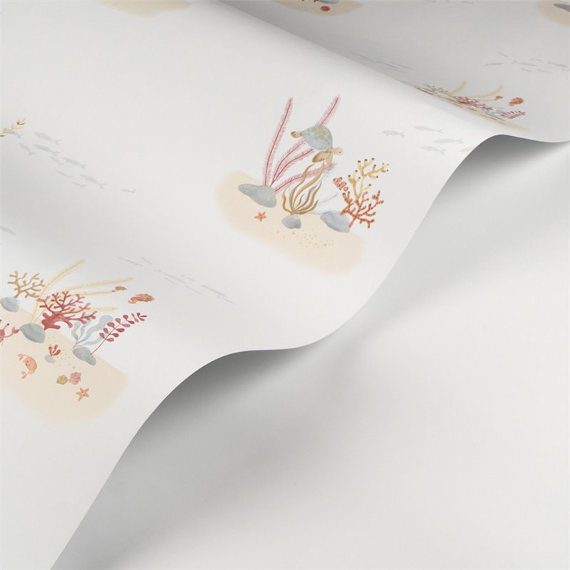 Papel pintado infantil corales y fauna marina blanco y beige marca Casadeco, colección Once Upon A Time 2. Calidad tejido no-tejido lavable, medidas: 53 cm x 10 m.