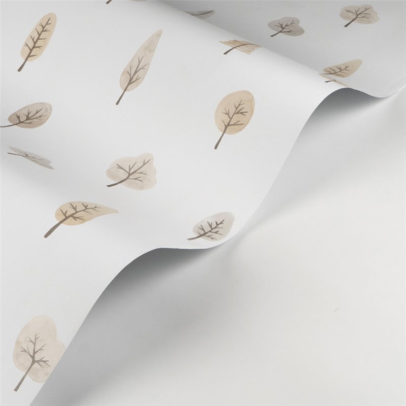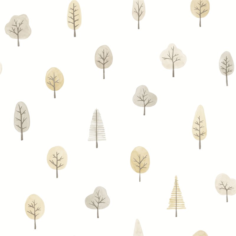Papel pintado infantil árboles del bosque blanco y beige