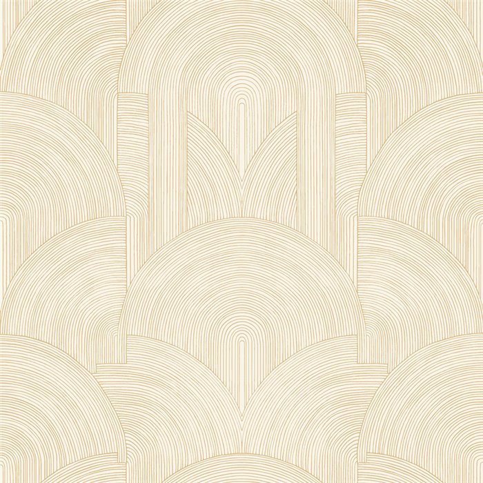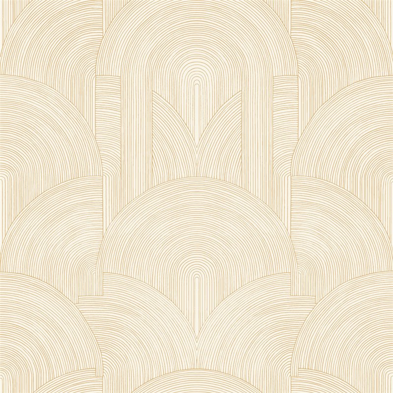 Papel pintado geométrico con arcos dorados estilo art deco. Caselio Light, papel de pared calidad tejido no tejido lavable. Medidas: 53 cm x 10 metros