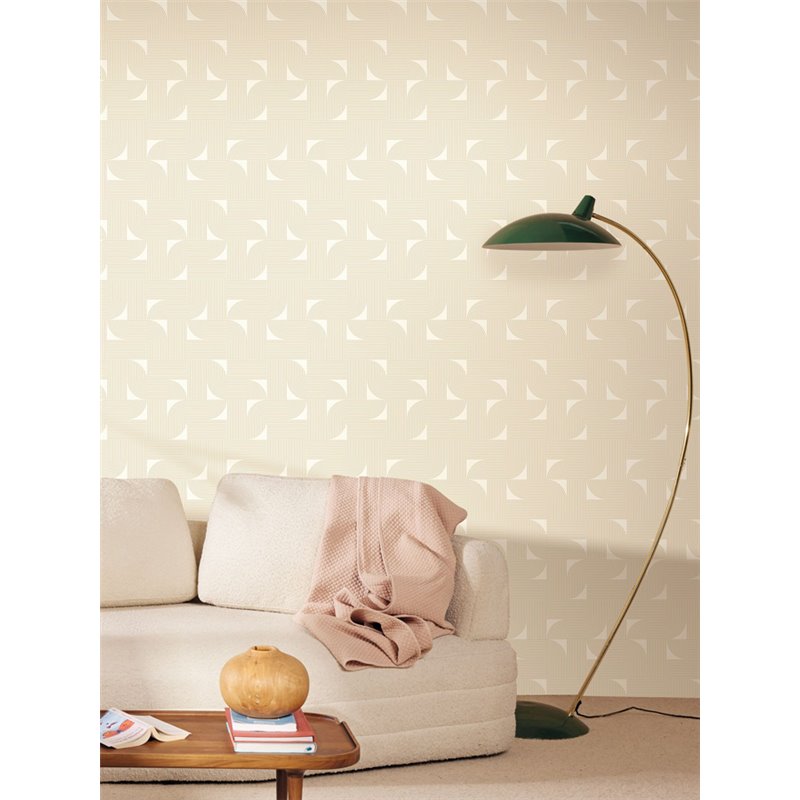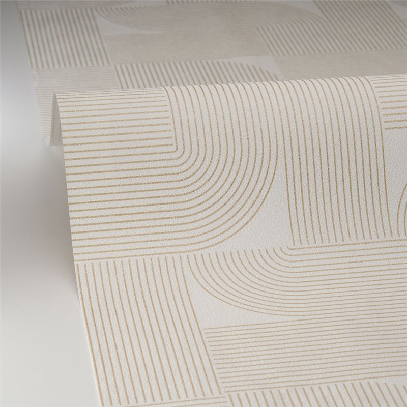 Papel pintado para salón elegante geométrico, blanco y dorado. Caselio Light, papel de pared calidad tejido no tejido lavable. Medidas: 53 cm x 10 metros