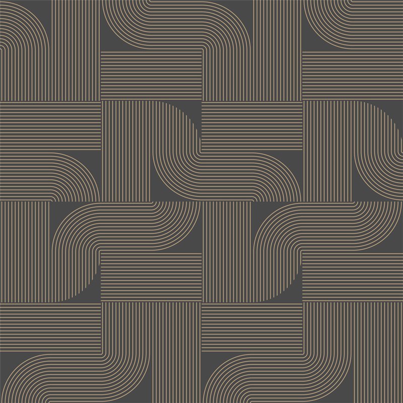 Papel pintado geométrico estilo art deco azul y dorado. Caselio Light, papel de pared calidad tejido no tejido lavable. Medidas: 53 cm x 10 metros