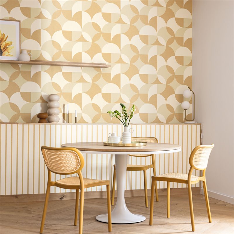 Papel pintado geométrico de círculos ideal para cocinas. Caselio Twist, papel de pared calidad tejido no tejido lavable. Medidas: 53 cm x 10 metros