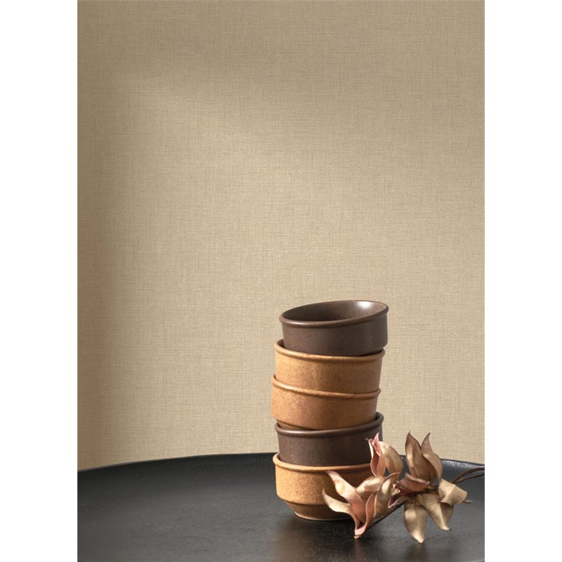 Papel pintado efecto lino grueso beige con un bonito jaspeado. Cálido para un comedor acogedor.
