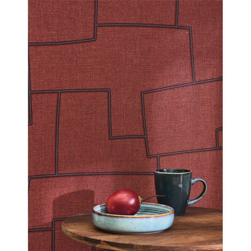 Papel pintado moderno efecto textil con bordadados y formas geométricas. Chic para un despacho moderno.