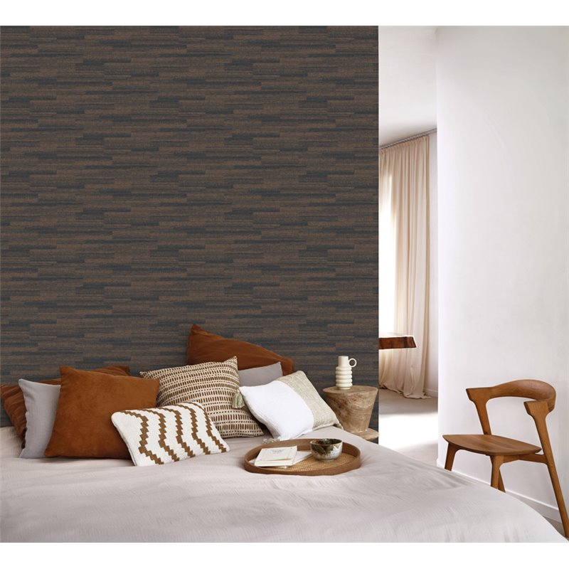 Papel pintado abstracto efecto madera, ideal dormitorio moderno