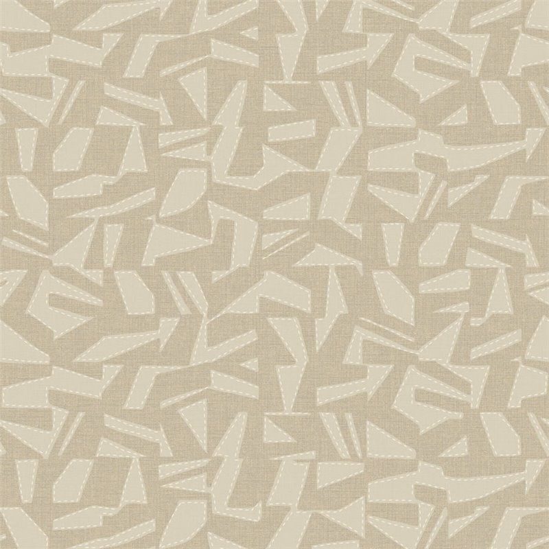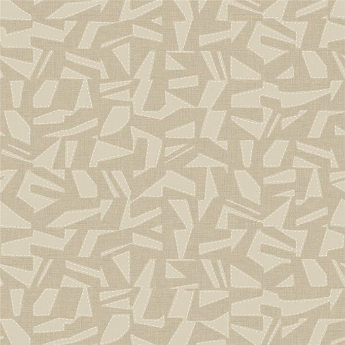 Papel pintado efecto lino blanco crudo con figuras geométricas estilo étnico. Moderno para un dormitorio sereno.