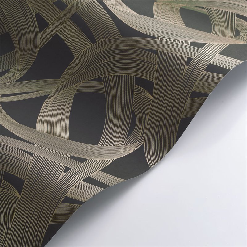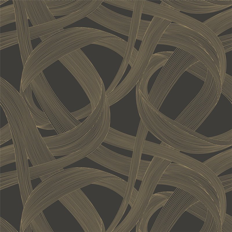 Papel pintado salón moderno con espirales estilo abstracto beige y negro. Chic para un espacio sofisticado.