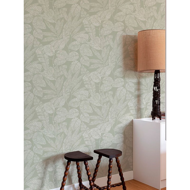 Papel pintado floral estampado hojas verde. Renueva tus espacios para el salón. Haz de tus paredes el centro de atención.