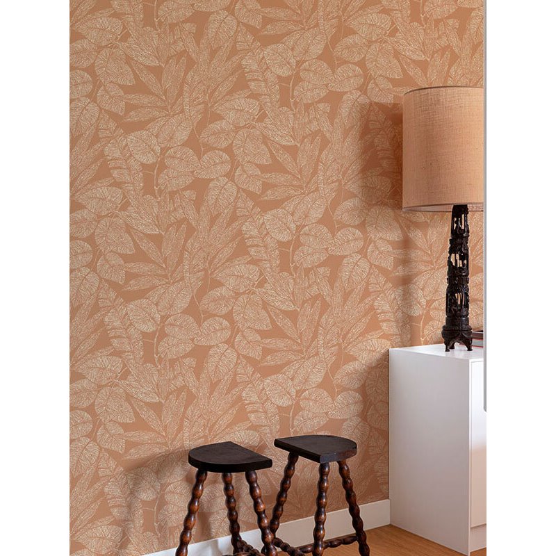Papel pintado floral tropical tonos beige. Dale vida a tus paredes para el salón. Ideal para quienes buscan calidez y estilo.