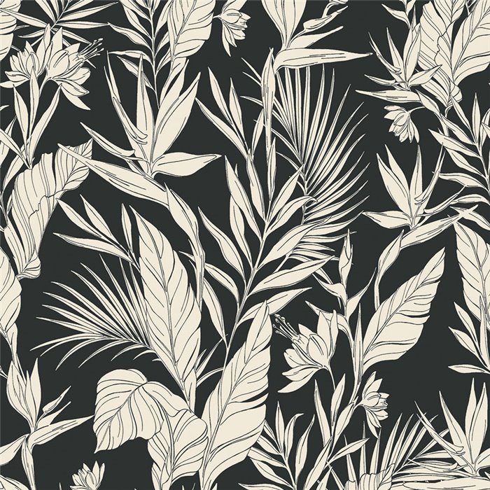 Papel pintado floral tropical tonos beige. Dale vida a tus paredes para el salón. Ideal para quienes buscan calidez y estilo.
