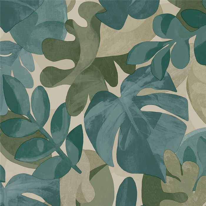 Papel pintado floral hojas monstera y ficus multicolor. Eleva el look de tu casa para una pared destacada. Un papel pintado con personalidad propia.