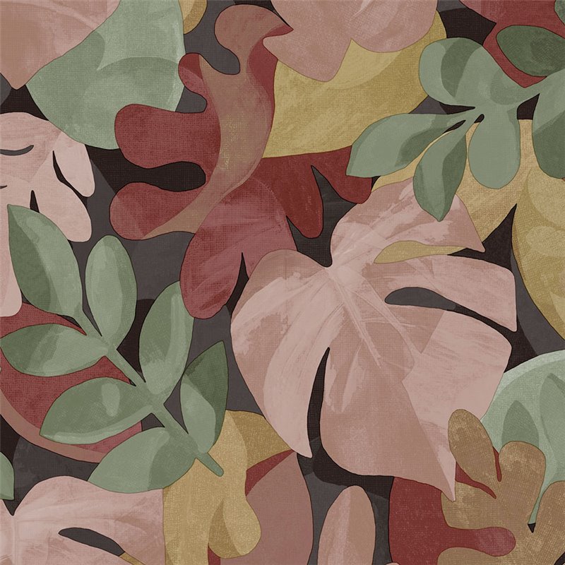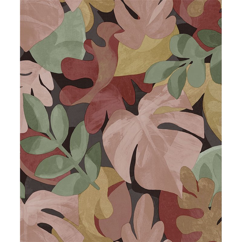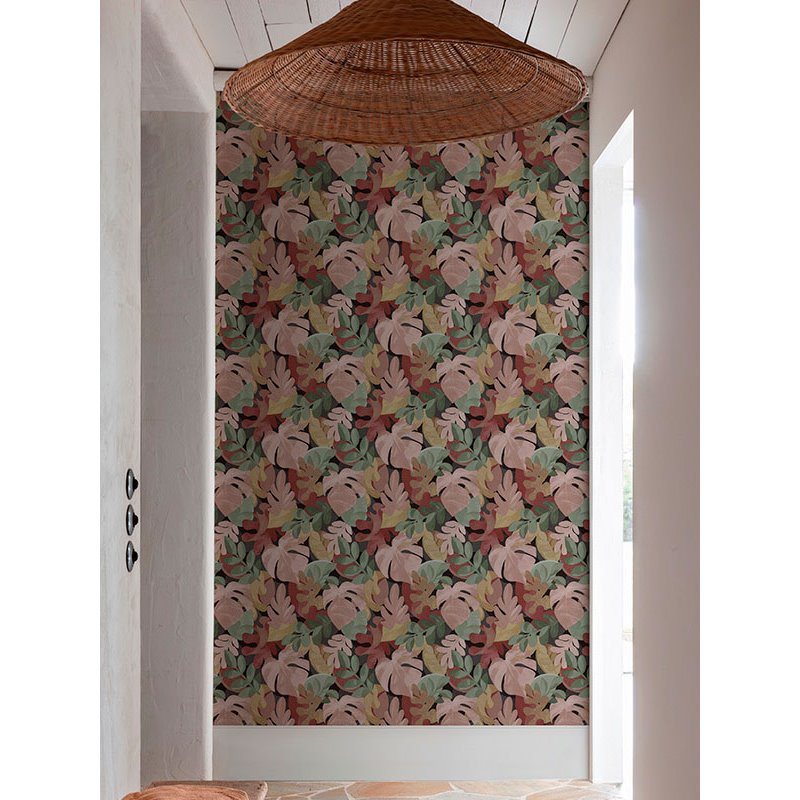 Papel pintado floral hojas monstera y ficus multicolor. Eleva el look de tu casa para una pared destacada. Un papel pintado con personalidad propia.