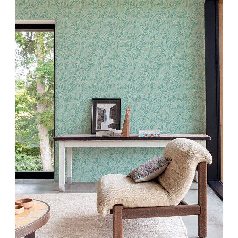 Papel pintado hojas de palmera color verde tropical. Eleva el look de tu casa en tu oficina en casa. Haz de tus paredes el centro de atención.