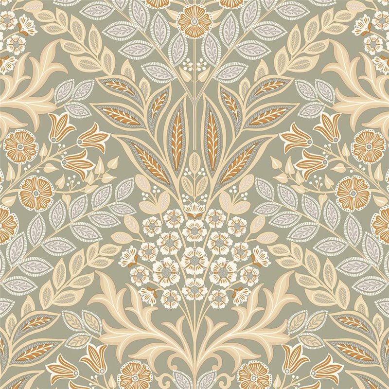 Papel pintado damasco ornamental verde estilo clásico. Hazlo destacar con diseño para el salón. Un diseño que transforma cualquier ambiente.