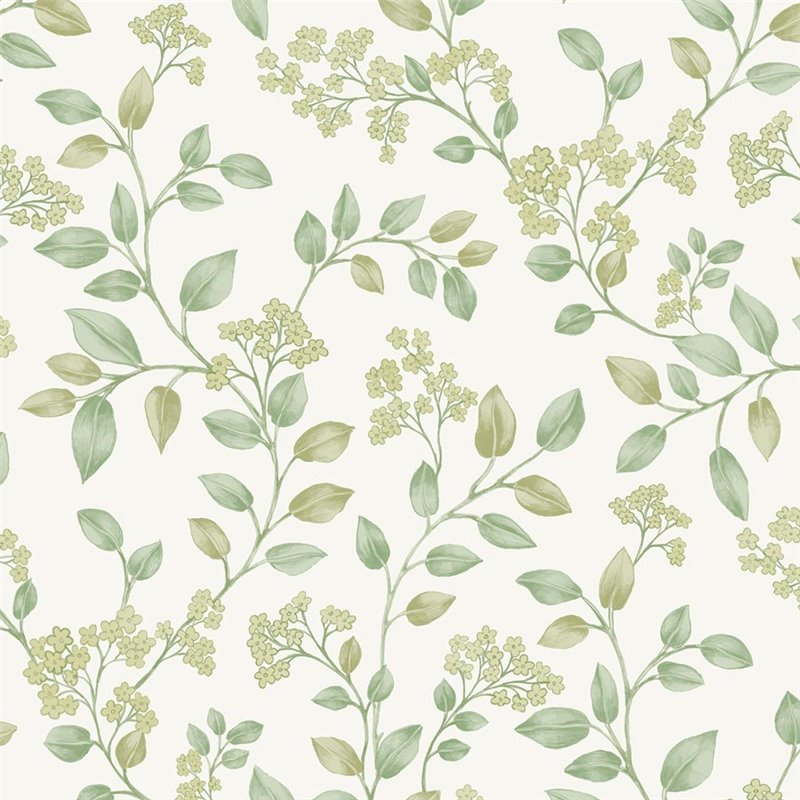 Papel pintado romántico: flores pequeñas verde. Hazlo destacar con diseño en tu dormitorio. Ideal para quienes buscan calidez y estilo.
