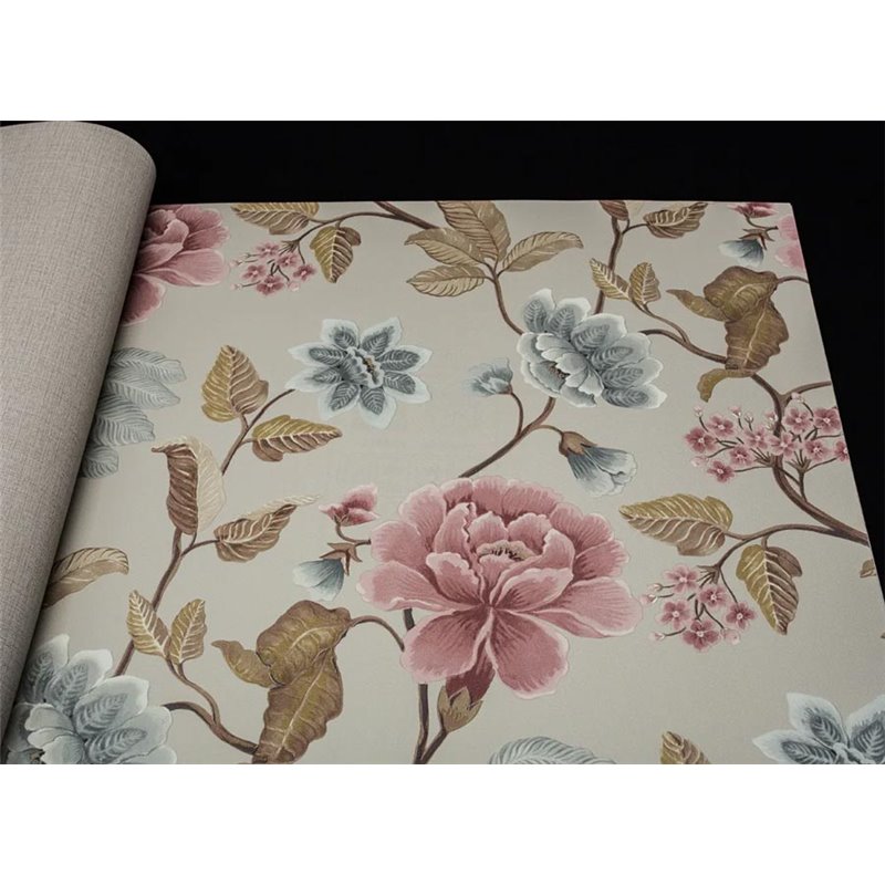 Papel pintado romántico flores grandes blanco y malva. Hazlo destacar con diseño para el salón. Haz de tus paredes el centro de atención.