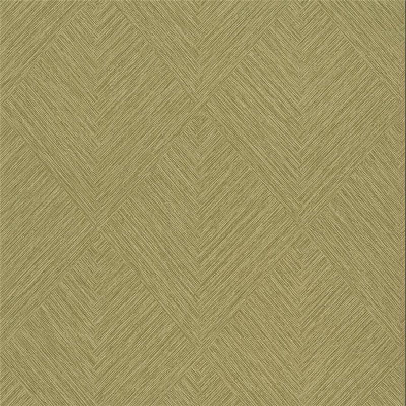 Papel pintado patrón espiga geométrico verde. Aporta un toque único perfecto para el comedor. Ideal para quienes buscan calidez y estilo.