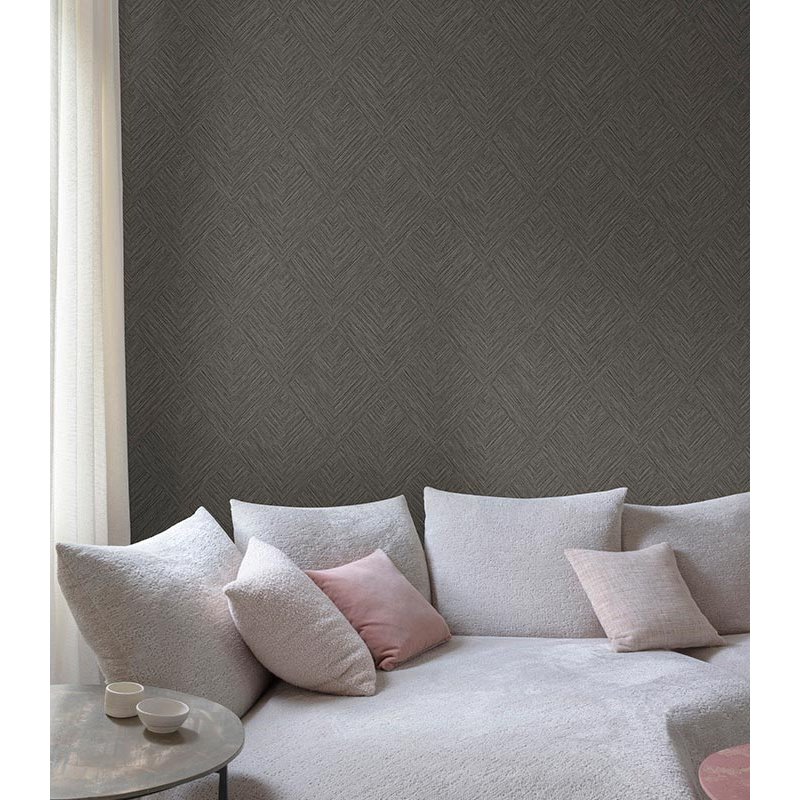 Papel pintado patrón espiga geométrico caqui. Transforma tu hogar con estilo ideal para tu rincón de lectura. Haz de tus paredes el centro de atención.
