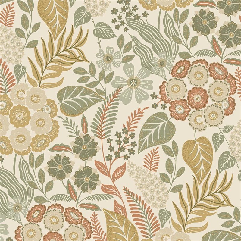 Papel pintado floral estilo escandivavo beige. Decora con encanto perfecto para el comedor. Combina perfectamente con estilos modernos y clásicos.