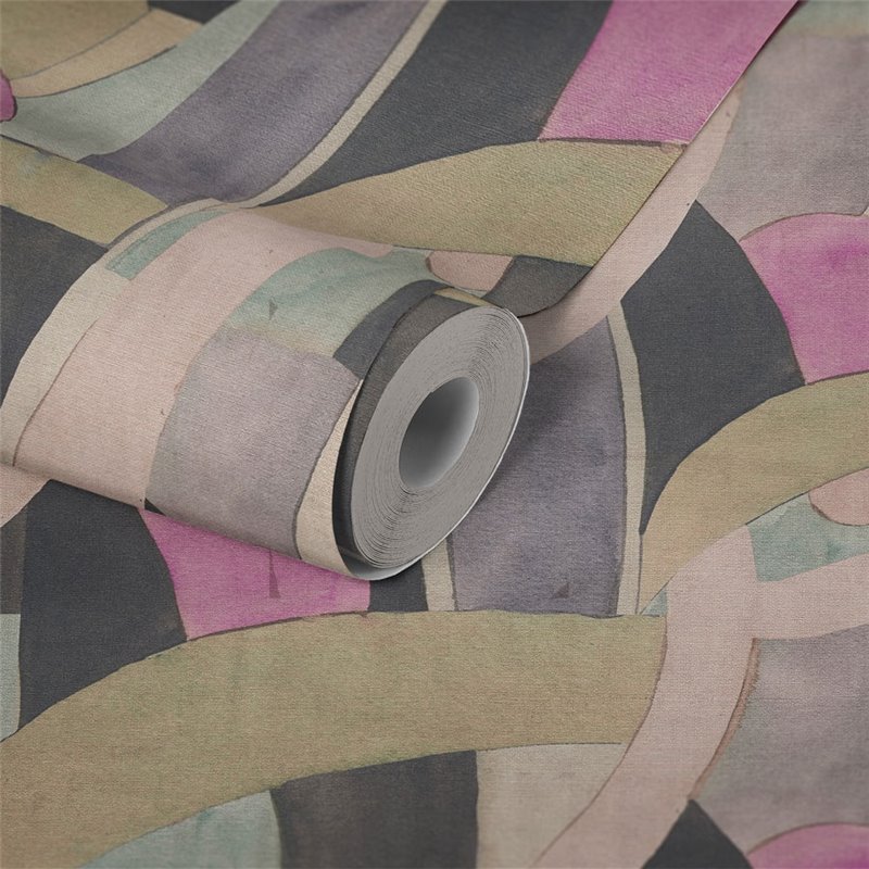 Papel pintado art deco verde caqui y dorado, una propuesta decorativa refinada para interiores contemporáneos.