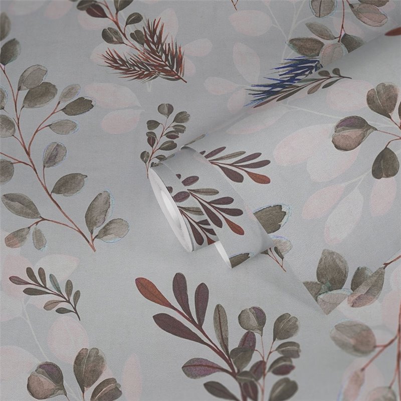 El papel pintado Painted Petals 2028782212 gris y su diseño botánico con ramas, hojas y pequeños detalles es ideal para ambientes serenos y sofisticados. Este diseño encaja perfectamente en estilos escandinavos, modernos y naturales.